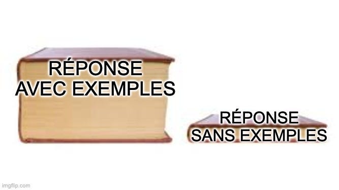 Avec des exemples, tu cadres exactement ce que tu attends. L’IA s’adapte à ton ton, ton style, et même à la façon dont tu brainstormes. C’est là que tu fais toute la différence.
